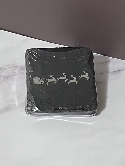 Add festive flair to your home with these laser-engraved Santa and reindeer slate coasters. Features natural slate material and precision laser engraving, perfect for holiday gatherings or gifting.